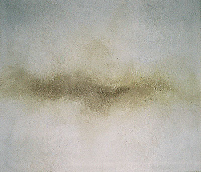 Die Farbe wird über die ganze Leinwand verteilt und moduliert und erhält durch unterschiedlichen Auftrag allmählich eine besondere Tiefenwirkung.
